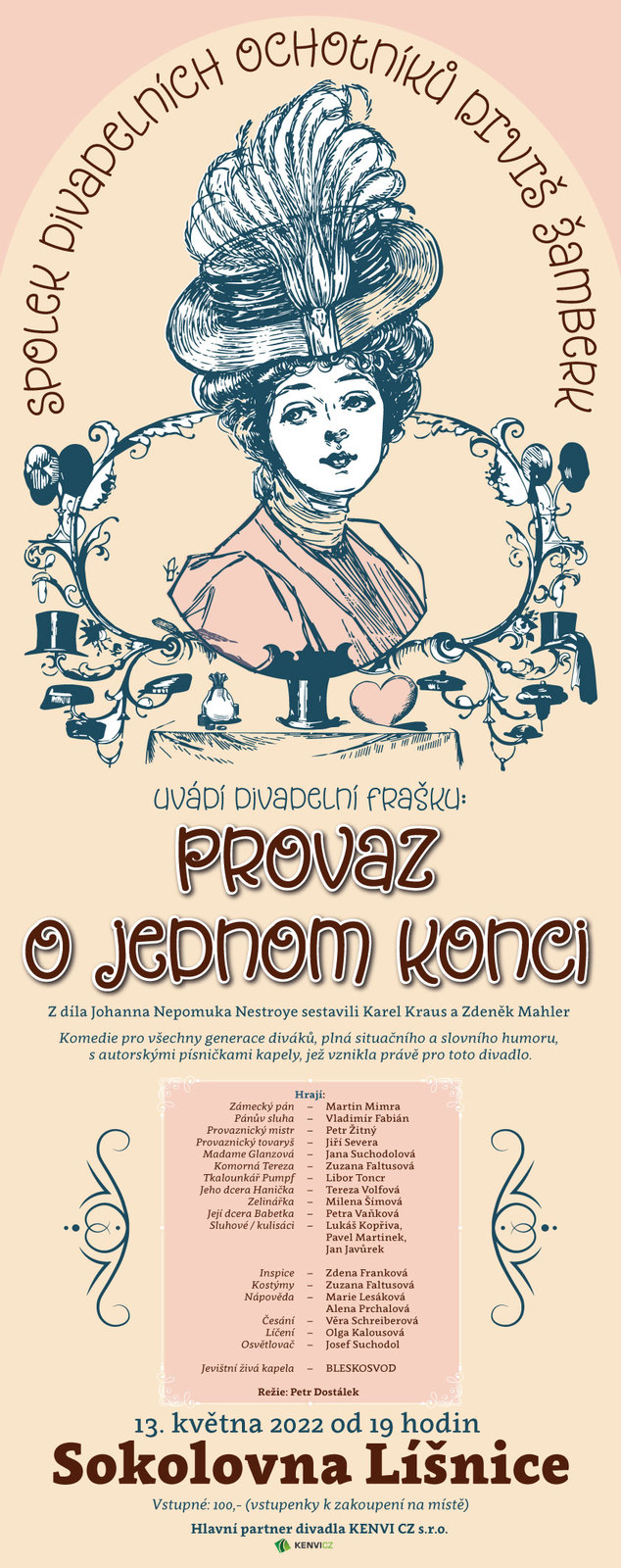 TJ Sokol Líšnice ve spolupráci se Spolkem divadelních ochotníků Diviš Žamberk uvede v líšnické sokolovně 13.5.2022 od 19 hodin divadelní frašku PROVAZ O JEDNOM KONCI.