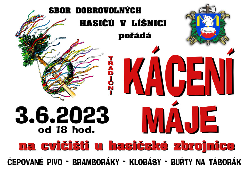 Sbor dobrovolných hasičů Vás zve na tradiční Kácení máje, které se uskuteční v sobotu 3.6.2023 od 18 hodin na cvičišti za hasičskou zbrojnicí. Můžete se těšit na tradiční poctivé bramboráky, uzené klobásky, špekáčky na oheň, točené pivo a něco ostřejšího na zahřátí. Každý si určitě vybere. Komu by byla zima, bude se moci ohřát u táboráku. Těšíme se na Vás.
