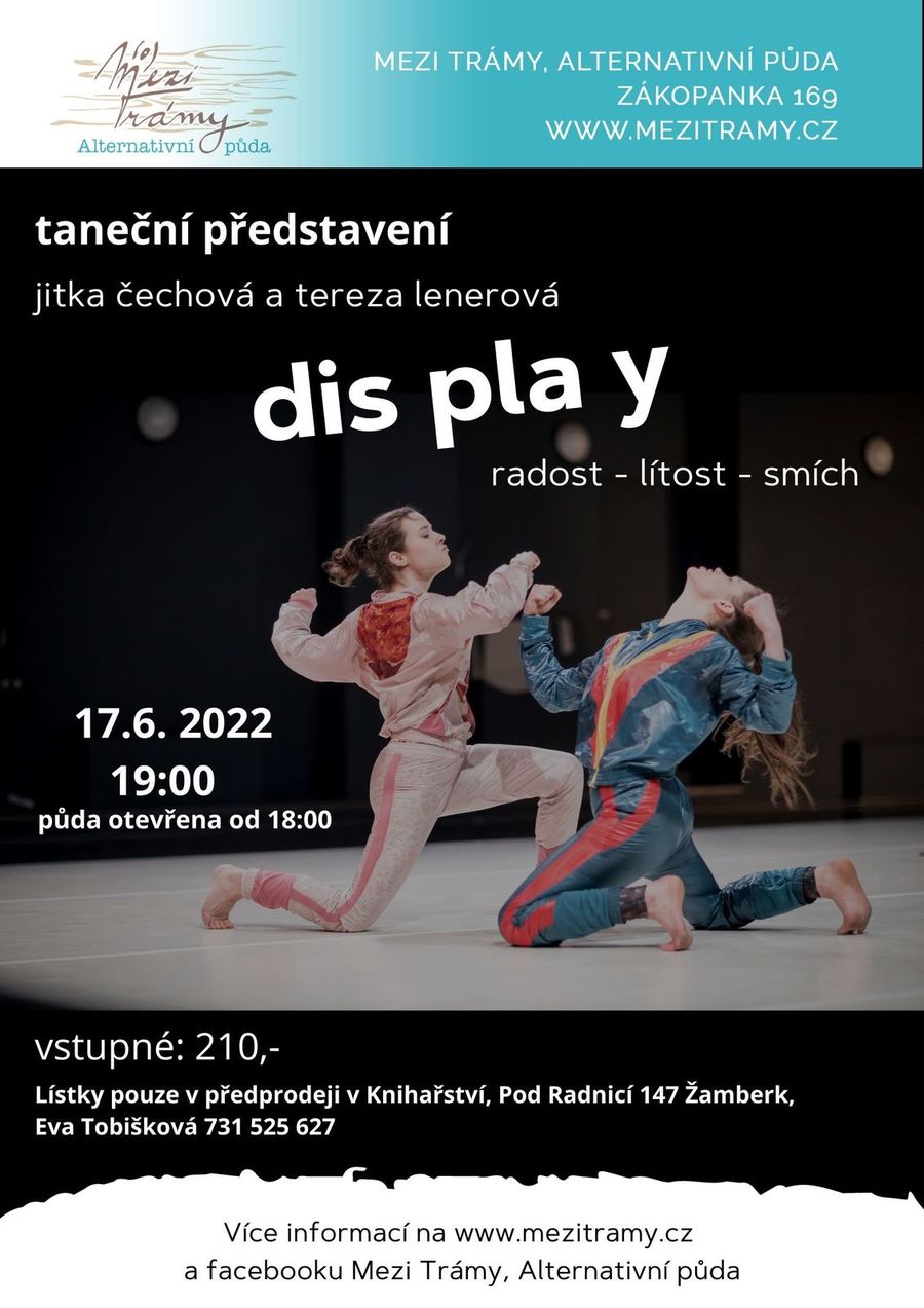 Vystav sebe na blýskavém povrchu a zrcadli odraz dojmu, který ze mě máš. Chvěji se rozpačitou touhou před tebou uklouznout a začít se nevhodně smát. Vyzýváme nejistotu na souboj a trapnosti dáváme zelenou. Myslíme to smrtelně vážně, REAL DEAL BABY! Ale kdy už si budeme moct oddychnout? This this this this play is not a play anymore. Hra, souhra, dohra a často i prohra - oscilování mezi tandemovou a soupeřící polohou, podporou a ztrátou opory, samotou a přijetím toho druhého. Jak lehké a zároveň těžké je být upřímný, jak lákavé a snadné je sklouznout do vypočítavosti a sebepřikrašlování. DIS play je vyosená hra pokřivených neexistujících pravidel zrcadlících se na obrysech naší těkavé nejistoty.