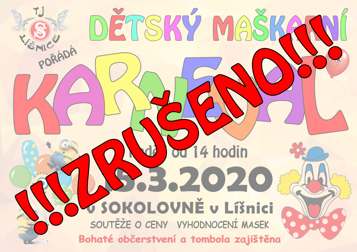 DĚTSKÝ MAŠKARNÍ KARNEVAL 15.3.2020 RUŠÍ!