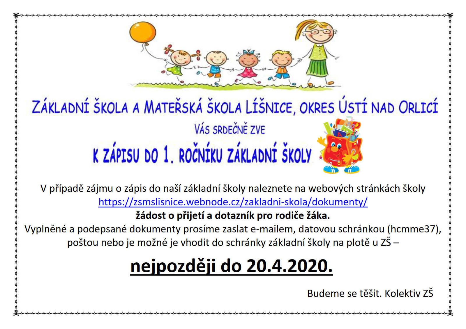 Zápis do 1. ročníku ZŠ v Líšnici