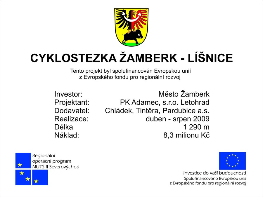 V letošním roce byla úspěšně zrealizována stavba cyklostezky Žamberk – Líšnice, která významně přispěla ke zvýšení bezpečnosti cyklistické dopravy údolím Divoké Orlice a navazuje na budování sítě cyklostezek na Orlicku a Orlicko – Třebovsku. Cyklostezka vznikla za finanční podpory EU.